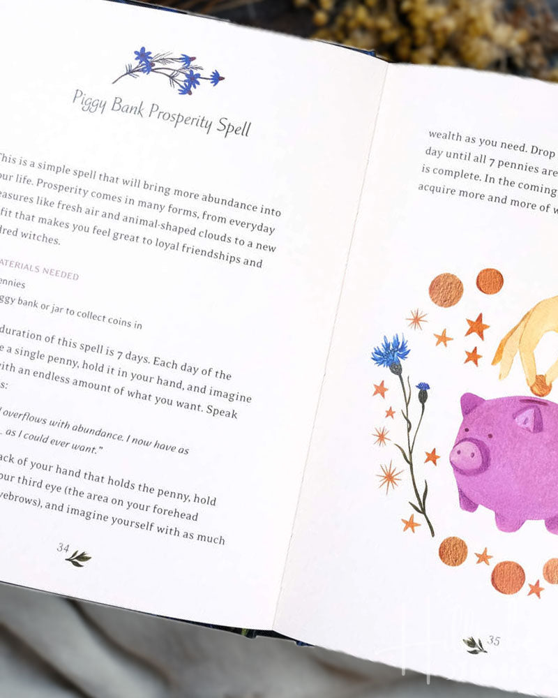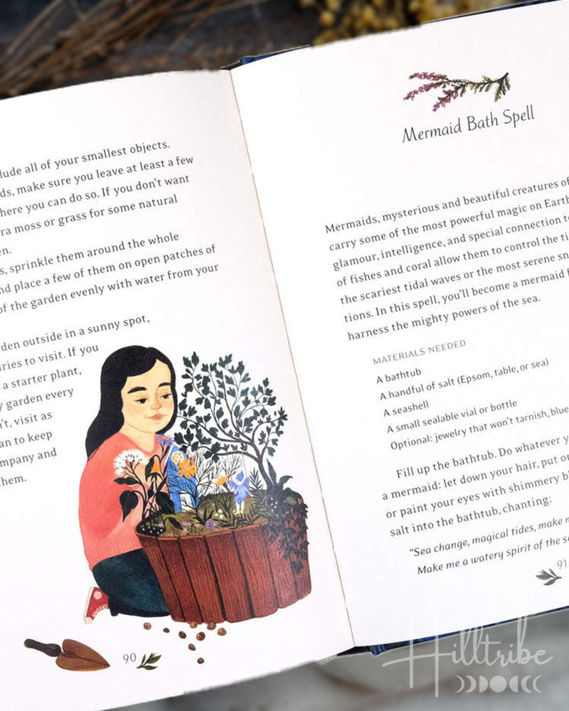 This unique children's witch book is a rare gem for young witches and those aspiring to be one. It features a variety of spells and activities that address concerns relevant to young readers, including the Best Friends Forever Spell, Jump Rope Protection Spell, Get Well Soon Elixir, Blanket Fort Magical Fortress Spell, How to Make a Magical Fairy Garden, and the Mermaid Bath Spell.