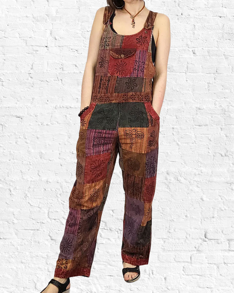 The Enya Overalls are the perfect combination of comfort and free-spirited style. Crafted ethically in Nepal using soft, breathable cotton, each pair is made unique with vibrant patchwork designs and hand-printed details. They offer a relaxed fit perfect for movement and effortless style, making them a versatile addition to your wardrobe. Pair with a tank or long-sleeve for a laid-back boho vibe, or add a sweater for cooler days. These overalls are not only timeless but also sustainable, making them a worthy addition to your closet.