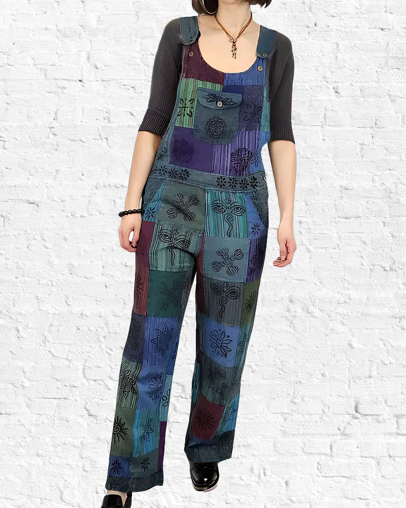 The Enya Overalls are the perfect combination of comfort and free-spirited style. Crafted ethically in Nepal using soft, breathable cotton, each pair is made unique with vibrant patchwork designs and hand-printed details. They offer a relaxed fit perfect for movement and effortless style, making them a versatile addition to your wardrobe. Pair with a tank or long-sleeve for a laid-back boho vibe, or add a sweater for cooler days. These overalls are not only timeless but also sustainable, making them a worthy addition to your closet.