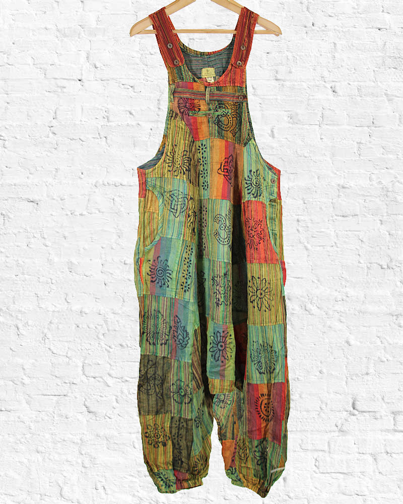 Show your unique style with our Patchouli Patch Overalls! Made with love completely by hand in Nepal, these all-cotton patchwork overalls feature traditional Nepalese and Tibetan symbols and come with the assurance of Fair Trade. Stand out from the crowd and express your individuality with Patchouli Patch Overalls!