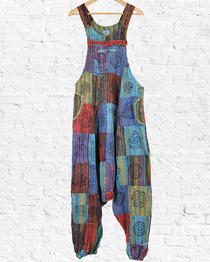 Show your unique style with our Patchouli Patch Overalls! Made with love completely by hand in Nepal, these all-cotton patchwork overalls feature traditional Nepalese and Tibetan symbols and come with the assurance of Fair Trade. Stand out from the crowd and express your individuality with Patchouli Patch Overalls!