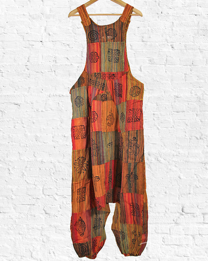 Show your unique style with our Patchouli Patch Overalls! Made with love completely by hand in Nepal, these all-cotton patchwork overalls feature traditional Nepalese and Tibetan symbols and come with the assurance of Fair Trade. Stand out from the crowd and express your individuality with Patchouli Patch Overalls!