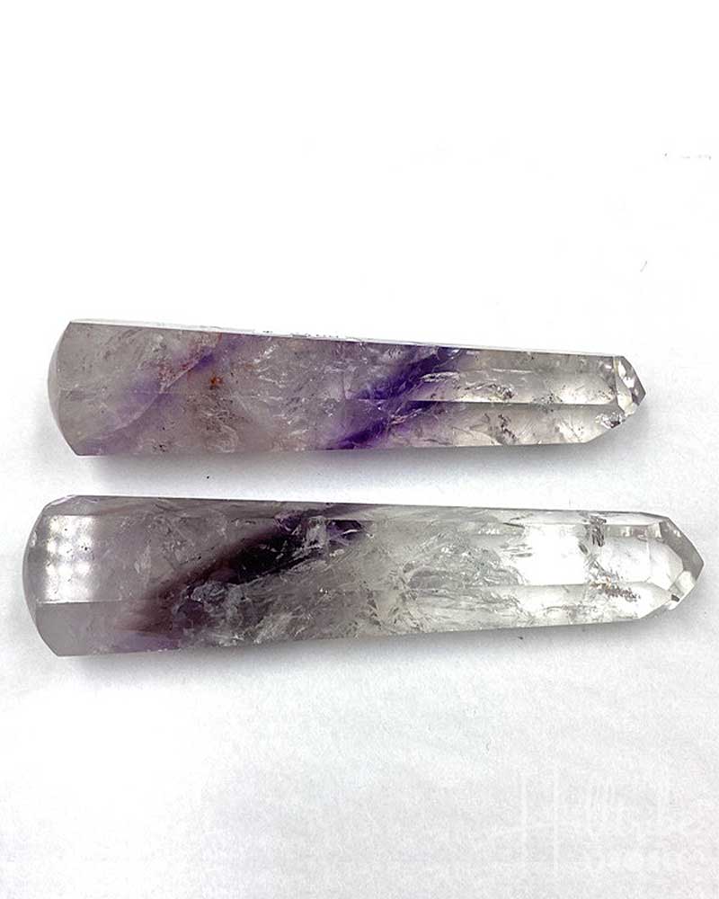 These large, slender wands are cut into six sides, culminating in a pointed tip, and are highly polished. Each crystal piece is truly unique.