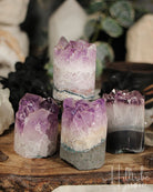Sparkling amethyst cylinders enhance any crystal grid, altar, or home decor as elegant statement pieces.
