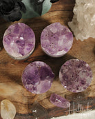 Each piece is wonderfully unique, ensuring that no two are identical. These amethyst cylinders are sourced from Brazil and measure approximately 2-5 cm in height and 3.5 cm in diameter. They are sold individually.