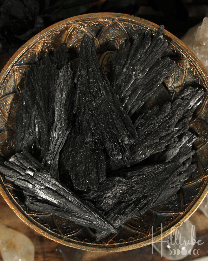 Black Kyanite grounds and protects us while activating our entire chakra system, helping align our body and spirit. It is widely used during deep meditation, enabling us to cut ties that no longer serve our higher good and safeguard our energy in situations that may leave us feeling drained and unbalanced. This stone is excellent for enhancing communication and aligning us with our life's purpose.