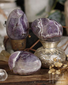 Chevron Amethyst is a powerful stone that enhances your clarity and intuition while clearing negative energies from your aura. This unique crystal blends the strengthening energy of Quartz with Amethyst’s calming properties, helping to soothe an overactive mind and bring harmony to your life. Known for attracting positivity and good fortune, it serves as a guiding beacon for your intentions and a source of stress relief. Embrace this elegant and lucky stone to illuminate your path and elevate your well-being.