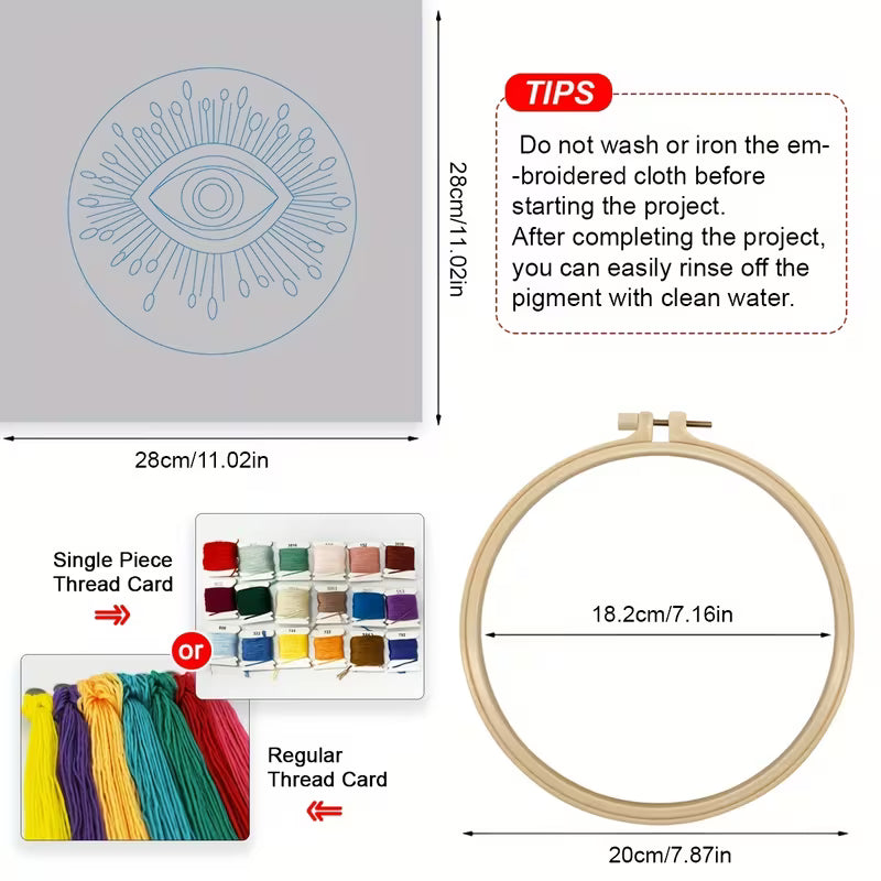 Dive into the magical world of stitching with our whimsical 20x20cm (7.9x7.9 inches) Embroidery Kit, perfect for both enchanted beginners and crafty conjurers alike! Unleash your creativity as you bring the mystical eye to life, casting spells of art with every thread.