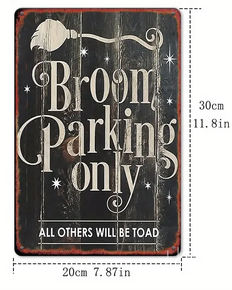Add a touch of whimsy to your space with this "Broom Parking Only" metal tin sign. Measuring 12" x 8" and featuring a rustic wooden design, it’s the perfect playful reminder that your broomstick has its own special spot. Durable and charming, this sign makes a fun statement for any witch’s home or Halloween decor. Hang it up and keep your parking space uniquely yours!