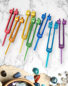 Enhance your overall well-being with Chakra Weighted Tuning Forks. These precise instruments produce specific frequencies, harmonics, and overtones for a truly transformative experience. Perfect for personal or professional use, these forks are portable and convenient, making it easy to stay "tuned" on-the-go. Discover the unique purposes of each chakra through the commonly used frequencies and elevate your journey to balance and harmony.