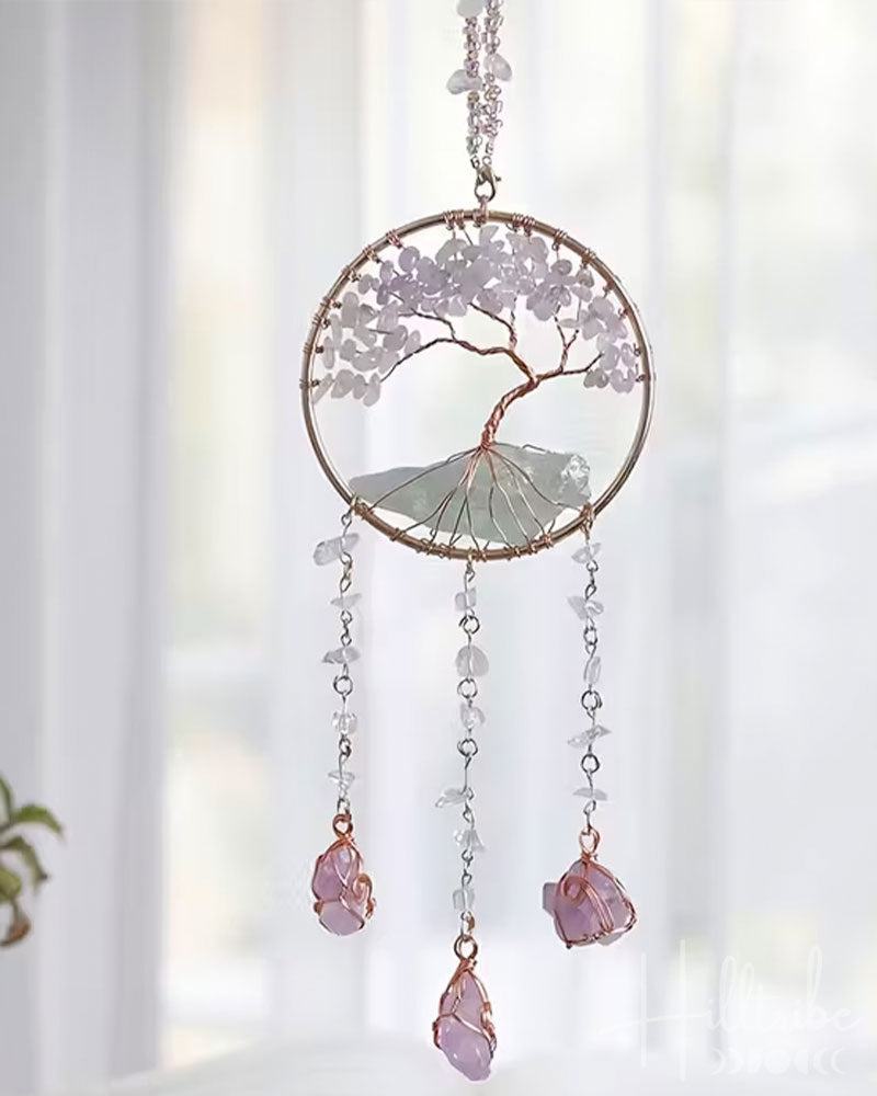 Add a serene touch to your home with the Crystal Tree Mobile, featuring genuine amethyst and clear quartz stones. This beautiful mobile not only enhances your décor but also encourages harmony and positive energy. Ideal for creating a peaceful atmosphere, this captivating piece seamlessly blends natural elegance with uplifting benefits.