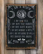 Express your true self with the "I Am a Witch" metal sign, featuring a vintage-inspired pentagram and crescent moon design. Crafted from high-quality, lightweight metal tin, this 12" x 8" sign is durable and easy to display with pre-drilled holes. Its clever message challenges stereotypes while adding a bold, mystical touch to your home or sacred space. Perfect for anyone proud to embrace their witchy vibes with confidence and style.