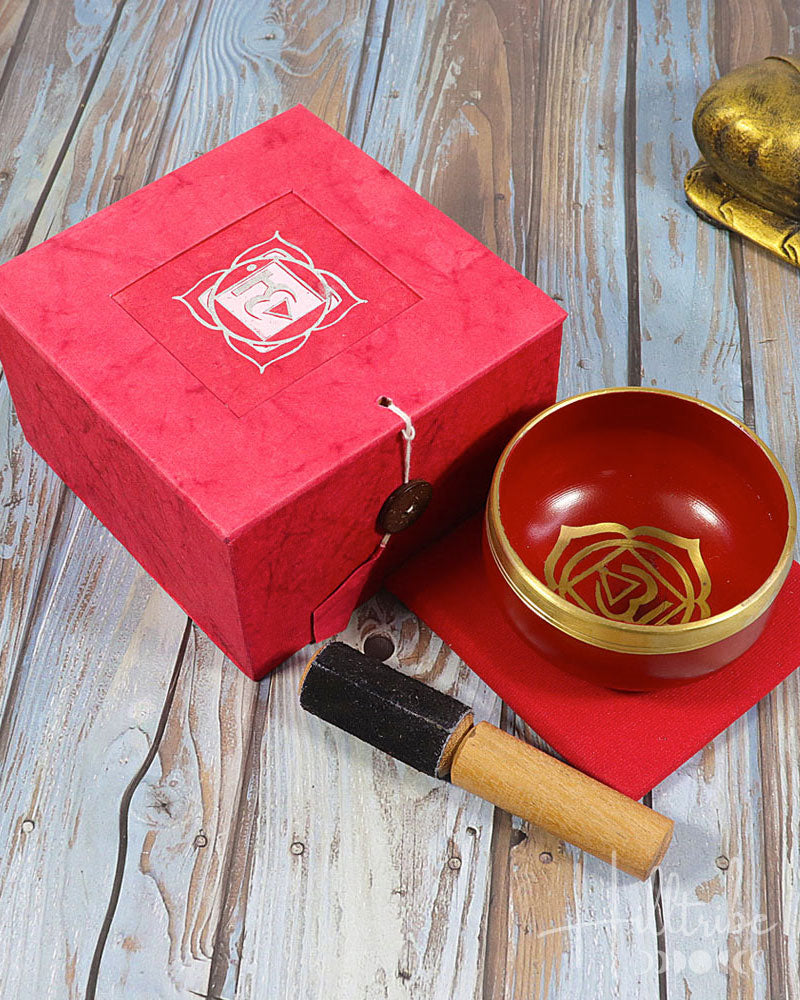 Unlock the limitless potential of sound with the Root Chakra Singing Bowl Gift Set. When the sides and rim of this standing bell vibrate, they produce a captivating melody with a base frequency and two audible harmonic overtones. This powerful instrument is known for its ability to induce relaxation and enhance focus, making it a valuable tool for anyone seeking balance and well-being.