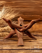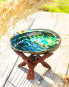 Unfurling into a sturdy tripod, this wooden cobra stand is perfect for supporting abalone shells, burning sage, displaying crystals, or holding small bowls. Each leg of the cobra is expertly carved from the same block of wood, resulting in a perfectly balanced and beautifully crafted product. Folded, it measures 6 inches long, and when unfolded, it expands to an impressive 6 inches in diameter. Take your spiritual practices to the next level with this exquisite tripod stand.
