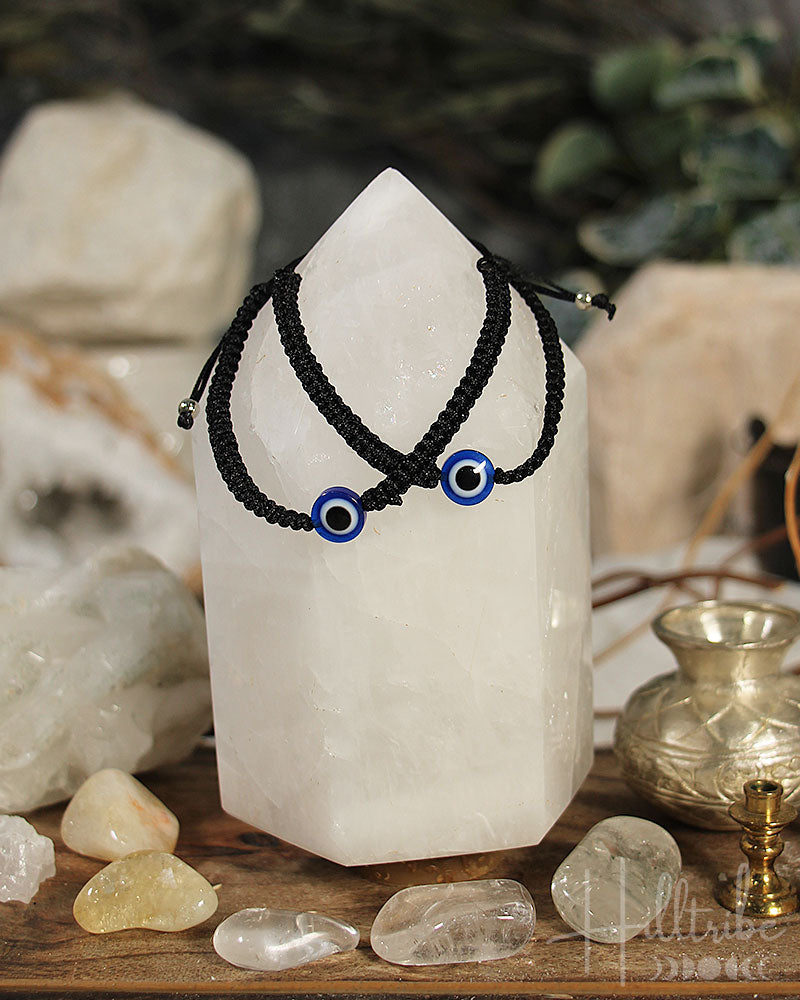 Evil Eye Adjustable Braided Bracelet Black