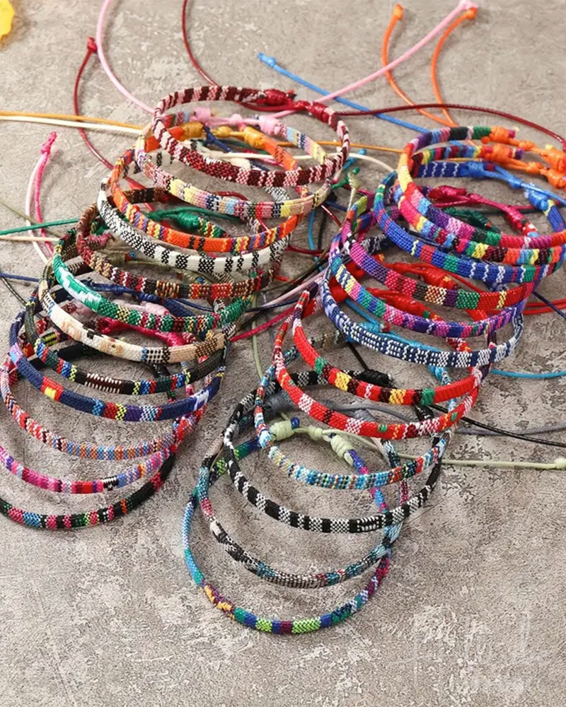 Vibrant, handcrafted friendship bracelets made from soft cotton with adjustable fit. Each bracelet features unique colors and patterns, making it one-of-a-kind. Following tradition, tie it around a friend's wrist while making a wish, and wear until it naturally falls off to honour your special bond. A meaningful gift that celebrates connection through colorful craftsmanship.