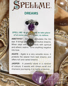 Unleash your wildest dreams with the Spell Me Dreams Necklace. Featuring 3 crystal beads, amethyst stimulates the 3rd eye for intuitive dreams, agate protects from negativity, and jasper aids in dream recall. Let this versatile and powerful necklace guide you to a world of endless possibilities!