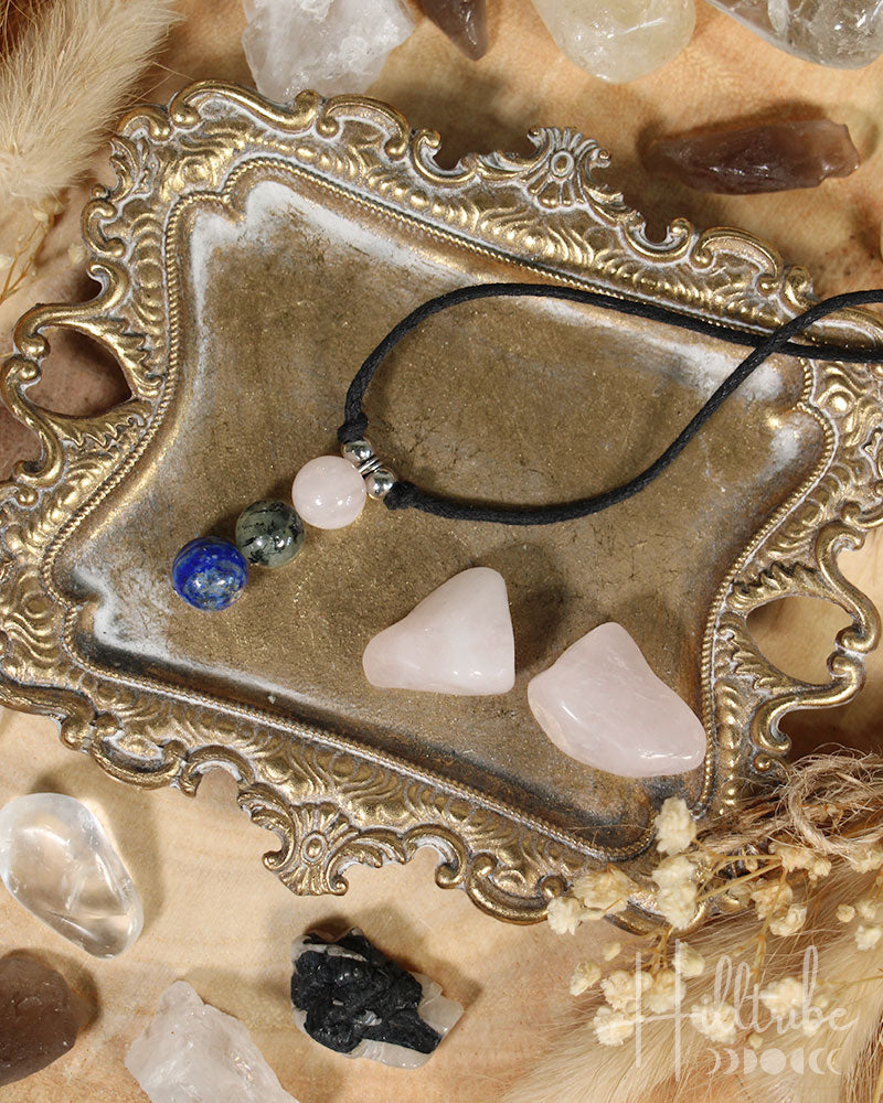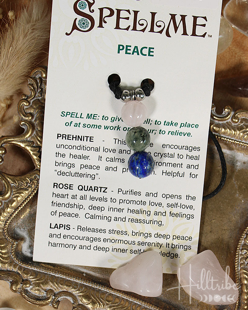 Indulge in the serene and peaceful vibes of our Spell Me Peace Adjustable Necklace. Made with Prehnite, Rose Quartz, and Lapis Lazuli crystals, this necklace promotes unconditional love, inner healing, and deep peace. Perfect for healing and finding inner harmony.