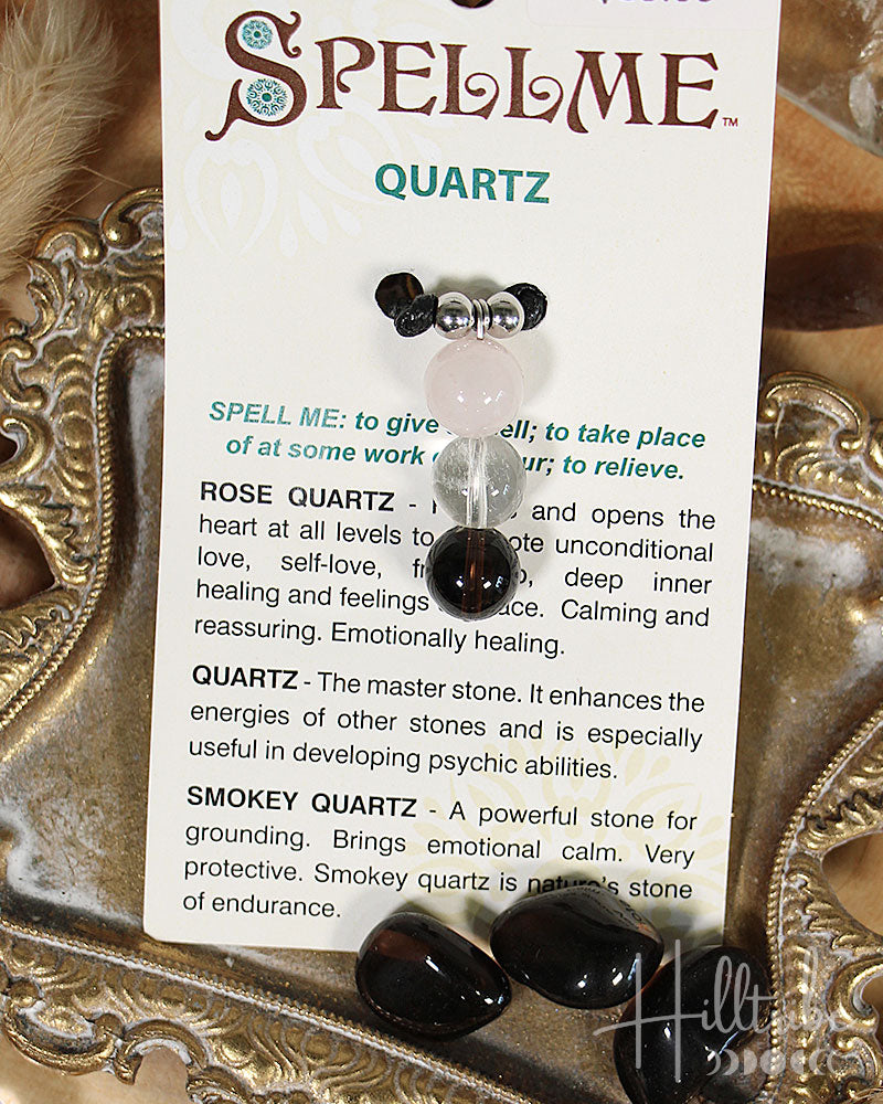 Spell Me Quartz Adjustable Necklace features 3 genuine crystal beads on a axed cotton adjustable cord. The Rose Quartz promotes unconditional love and deep inner healing while the Clear Quartz enhances the energies of other stones. The Smokey Quartz brings emotional calm and endurance.