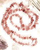 Embrace the uplifting energy of our Strawberry Quartz Chip Necklace, a beautiful symbol of compassion, harmony, and universal love. This joyful stone encourages self-healing and nurtures your spirit by deepening your connection to the Divine and the universe. Its soothing, grounding qualities support emotional balance while opening your heart to growth and positivity. Wear this necklace as a daily reminder to celebrate life’s blessings and cultivate inner strength with kindness and compassion.