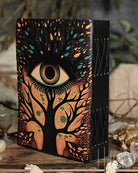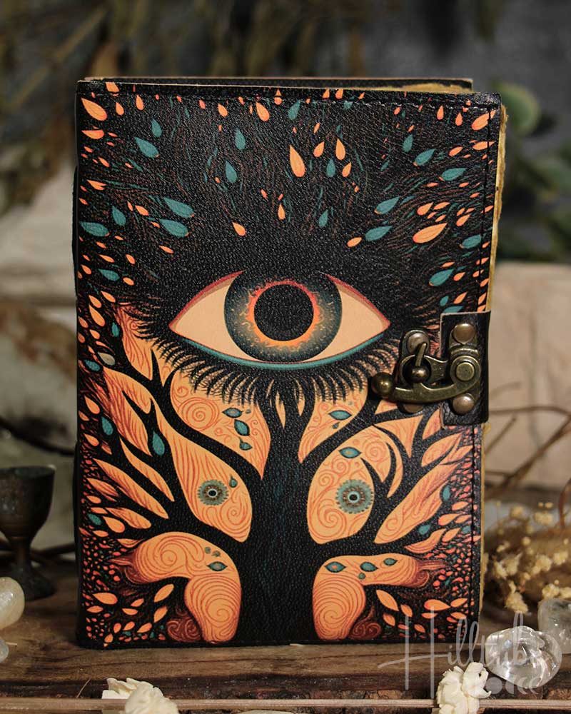 Experience an eco-friendly writing journey with this leather-bound journal! It features the All-Seeing Eye and Tree of Life designs, complemented by a vintage latch to keep it securely closed. Handcrafted from recycled paper, this journal is made in accordance with fair trade principles. It's perfect for journaling, sketching, or taking notes, making it an environmentally conscious choice you can be proud of.