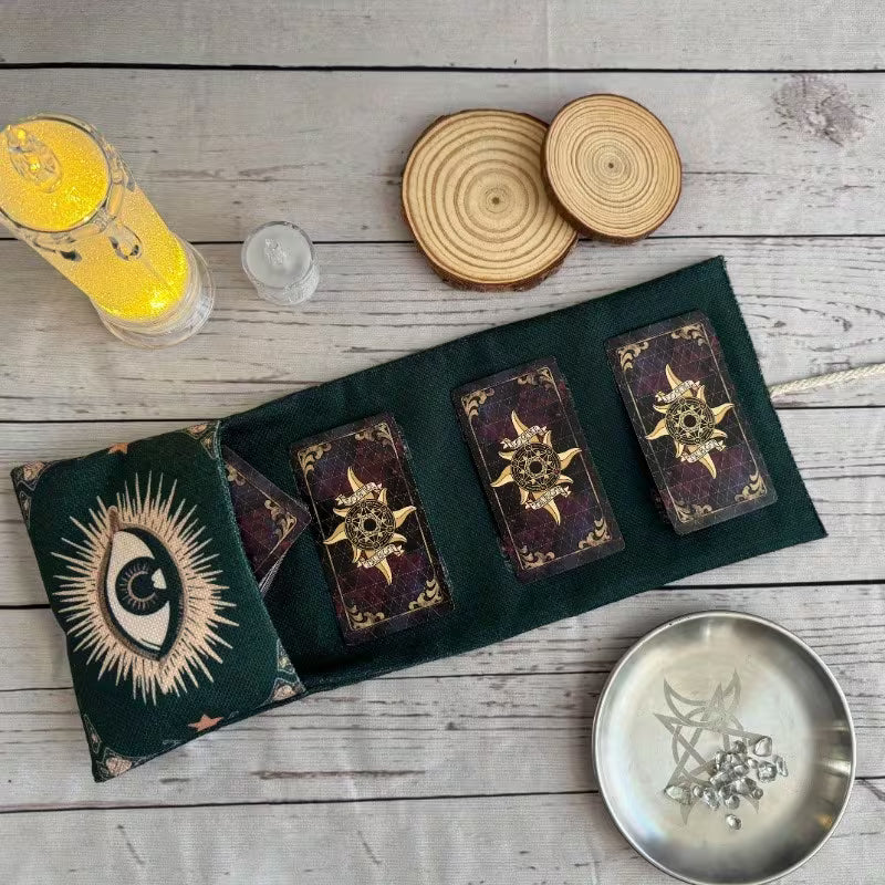 Dive into the mystical realms with our enchanting All-Seeing Eye Tarot Pouch Wrap! Adorned with the mesmerizing Mysterious Eye and shimmering stars, this pouch isn't just a storage solution—it's a magical accessory that brings your tarot and divination practices to life! 🌌🔮