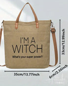 Unleash your inner witch with this fabulous "I'm A Witch" Canvas Tote! Measuring a bewitching 14 x 13 x 2.5 inches, this roomy bag is perfect for hauling your daily essentials or gathering magical treasures on your shopping escapades. Crafted from sturdy canvas and featuring an adjustable shoulder strap, it promises comfort and durability for all your enchanted adventures.