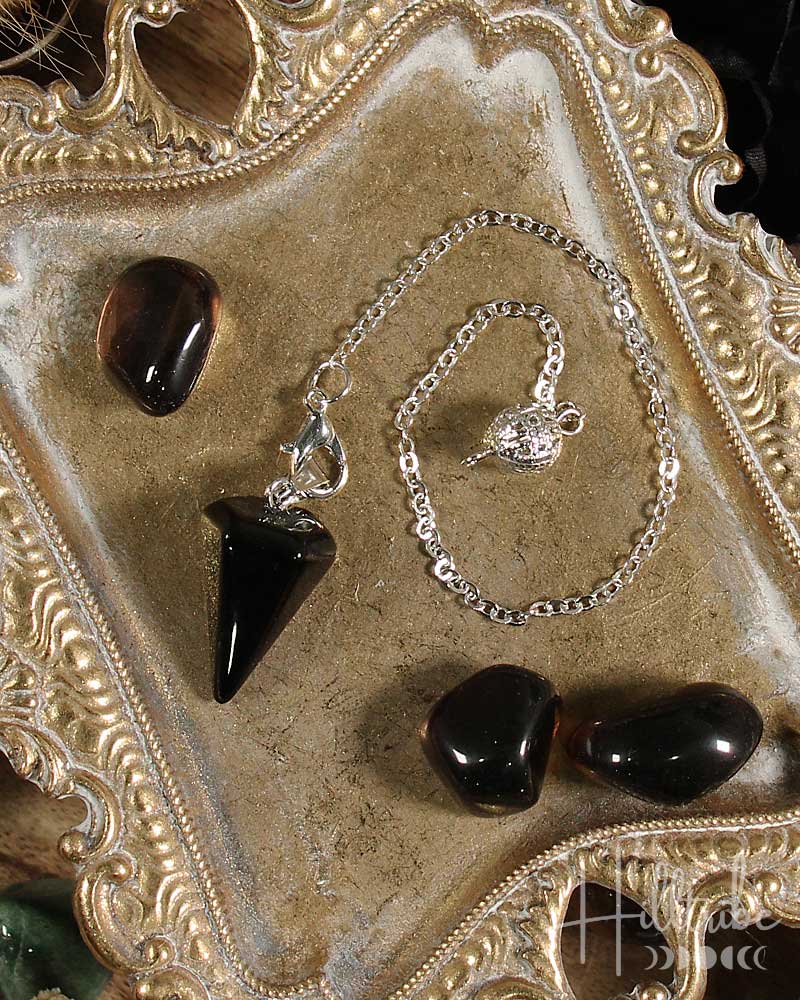 Obsidian Crystal Point Pendulum: This exquisite pendulum is thoughtfully crafted from polished black obsidian, featuring a pointed crystal tip that enhances sensitivity and precision. Serving as both a tool for divination and energy exploration, it represents a harmonious blend of functionality and aesthetic appeal with its elegant black sheen and unique natural patterns. The pendulum's balanced weight and design make it well-suited for engaging with energy fields and nurturing intuitive insights, contributing to both personal and collective growth across various practices.