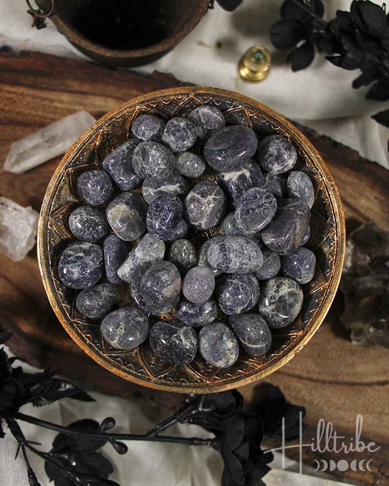 Iolite is often referred to as 'the vision stone' heightening intuition and aiding in understanding. It provides us with insights into our negative thought patterns and facilitates us being able to clear a path to our higher being, so that we can embrace new beginnings. It is known to re-energize our aura and bring about the ability to take responsibility for our actions and frees us to learn new ways to deal with issues.