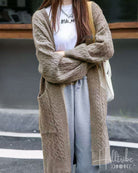Introducing our Cable Knit Cardi - the perfect outerwear for all seasons! Made from stretchy and cozy fabric, this cardigan offers both style and comfort. With its solid color design and longer length, it provides great coverage. One size fits all - making it a must-have addition to your wardrobe.