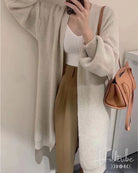 Introducing our Ribbed Knit Cardi - the perfect outerwear for all seasons! Made from stretchy and cozy fabric, this cardigan offers both style and comfort. With its solid colour design and longer length, it provides great coverage. One size fits all - making it a must-have addition to your wardrobe.