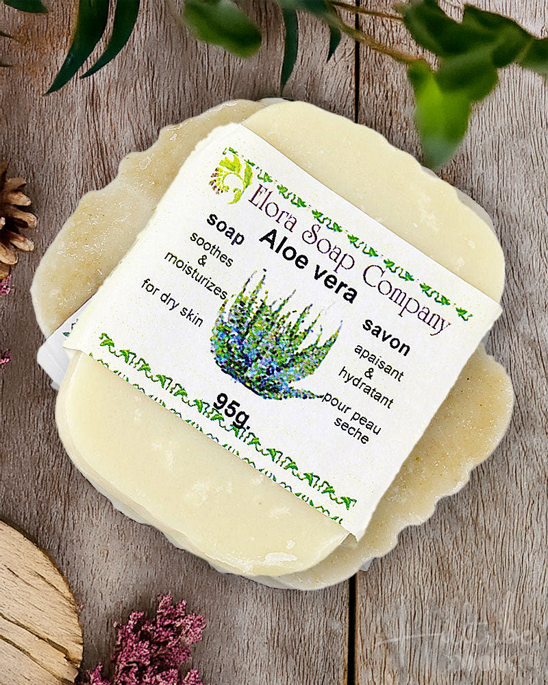 Ingredients: Canola Oil, Olive Oil, Coconut Oil, Water, Sodium Hydroxide, Sodium Chloride, Aloe Vera leaves.
