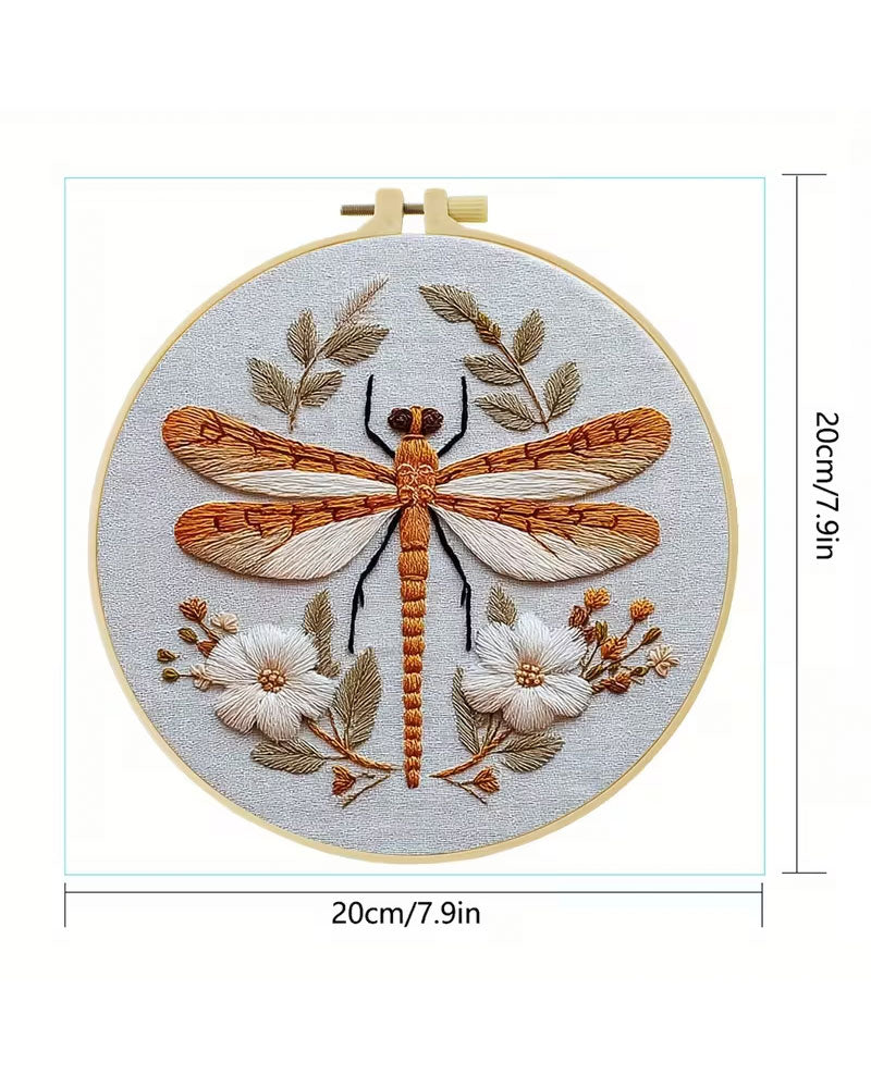 Introducing the ultimate DIY adventure: our delightful embroidery set featuring a charming dragonfly and flower design! Measuring a perfect 20 x 20 cm (7.9 x 7.9 inches), this handmade kit is perfect for adult beginners looking to unleash their creativity.