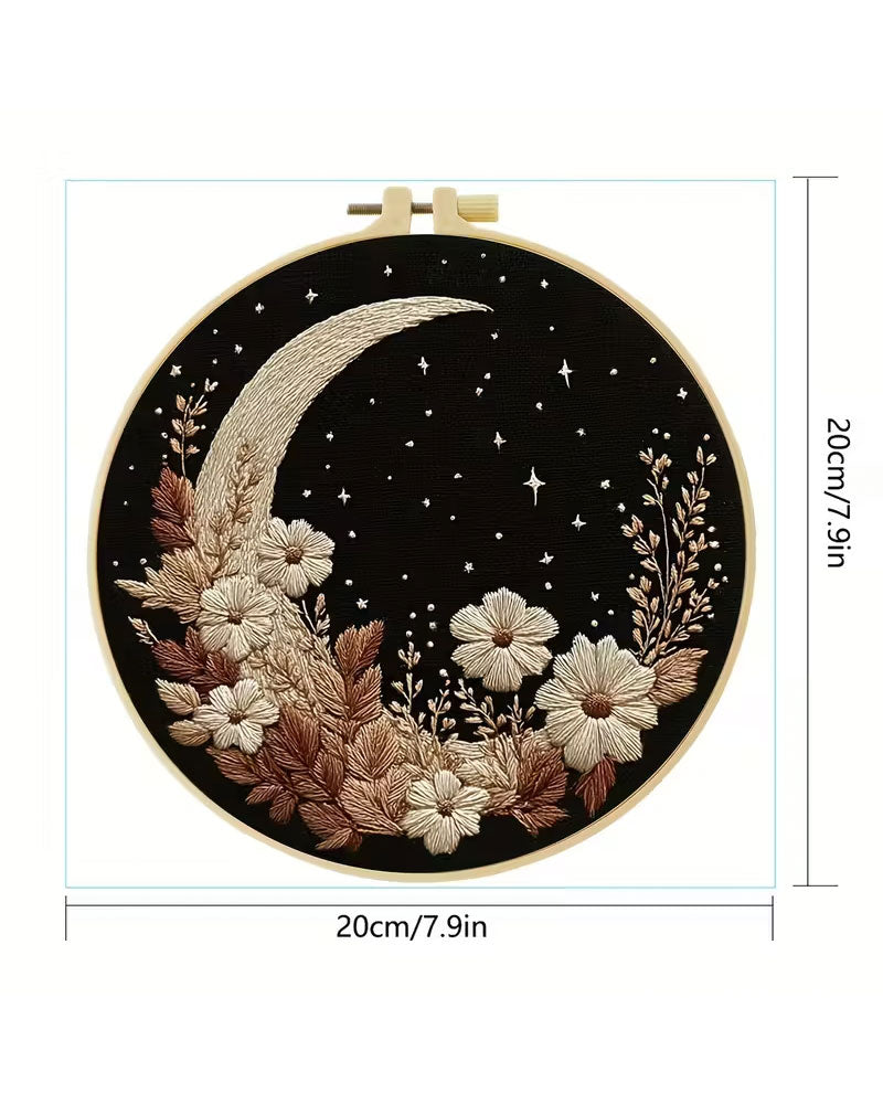 Get ready to stitch your way to creativity with our Beginner Embroidery Kit featuring the enchanting Hazel Moon Pattern! 🌙✨ This delightful kit comes packed with everything you need to dive into the world of embroidery, including a beautifully printed cloth, vibrant threads, and a trusty needle. Plus, the 20cm (8in) embroidery hoop will hold your masterpiece in place while you bring your imagination to life!