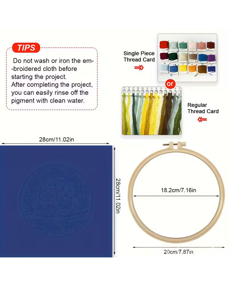 Introducing the enchanting Owl Embroidery Kit, where creativity takes flight! 🌙✨ With a charming night sky and whimsical owls design, this DIY adventure unfolds on a delightful 20x20cm (7.9x7.9") canvas.
