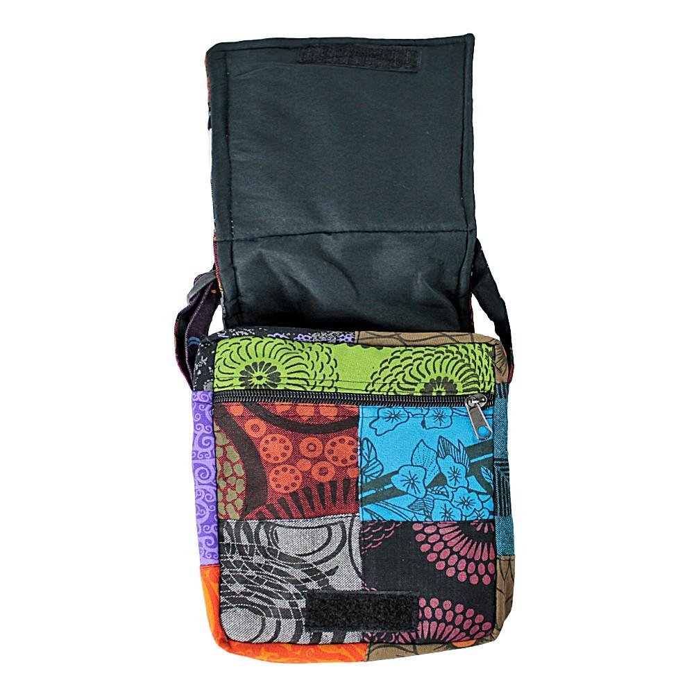 Introducing a compact and stylish crossbody bag that is handcrafted from 100% cotton, featuring vibrant patchwork and hand-printed details. Ethically made in Nepal, this bag offers secure storage with multiple zippered pockets and an adjustable strap for comfortable, hands-free convenience.